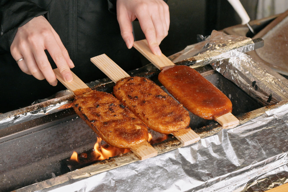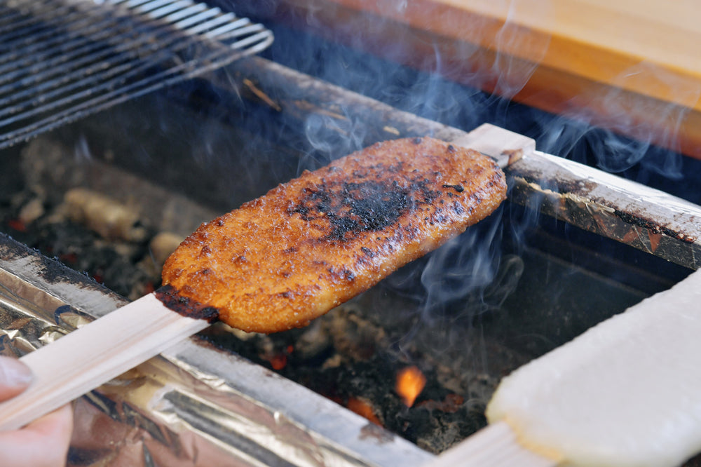 お米の栽培から収穫、厳選したお米を水加減に注意して炊き上げ、ほどよく粒感を起こしつつ、丁寧につぶして1本1本手作りしています。手間もコストもかかる作業ですが、もちもちと柔らかで美味しい五平餅を完成させるには手作りがベストです。